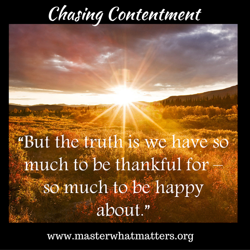 I choose contentment. What about you? Let’s all sing together “Oh happy day! Oh happy day! When Jesus washed my sins away!” That in itself is enough reason to be happy – full of joy – thankful and blessed!