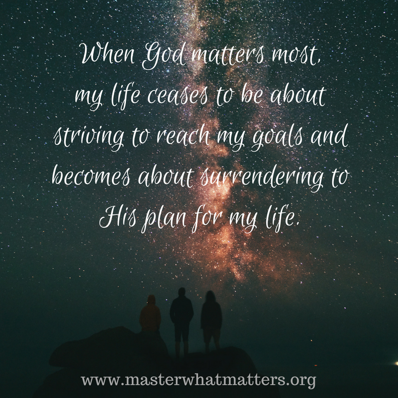 When God matters most, my life ceases to be about striving to reach my goals and becomes about surrendering to His plan for my life.